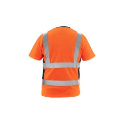 Pánské výstražné tričko s krátkým rukávem, kulatý průkrčník v modré barvě, zpevňující krční páska, boční švy, reflexní pruhy: 2 horizontální, 2 vertikální (šíře 5 cm), boční panely ze síťoviny v modré barvě. Doporučené použití: stavebnictví, silničáři, řidiči, logistika, údržba, kolo, motorky, skladování.