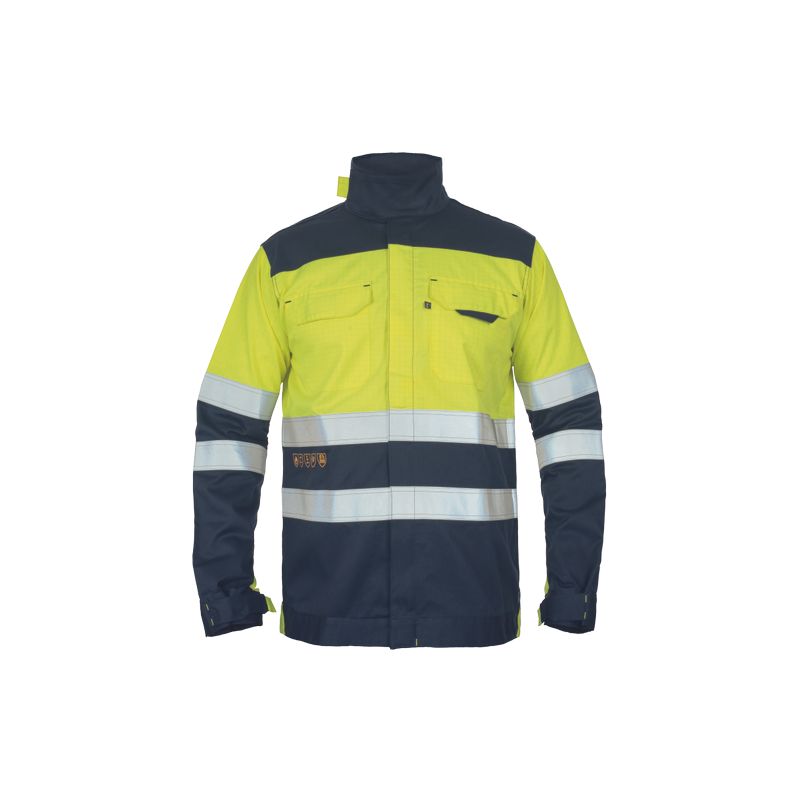 • pánská HI-VIS multinormní bunda se zapínáním na zip krytým légou na suchý zip • 2 náprsní kapsy s klopou na suchý zip • dvojice 5 cm šitých reflexních pruhů okolo rukávů a boků • nastavitelný obvod manžet rukávů o límce pomocí suchého zipu